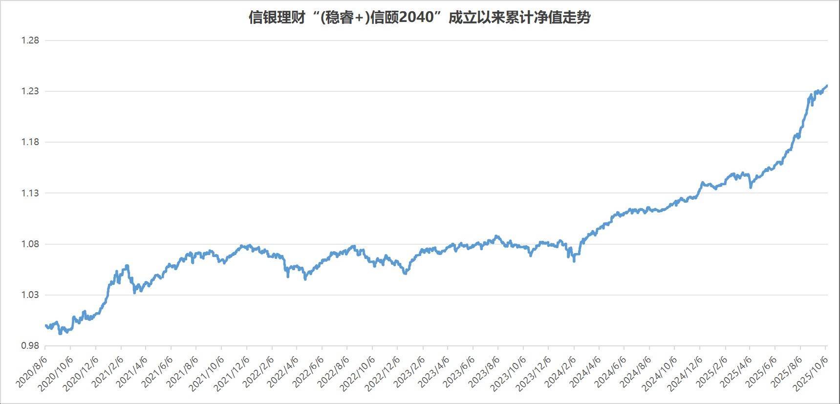 “(稳睿+)信颐2040”从成立之初就坚持风格稳定,定位为养老策略产品,为了满足2040年附近退休投资者的养老理财需求而设计,风险收益特征明确。在确定了养老目标之后,“(稳睿+)信颐2040”坚持稳健的投资策略,在债权类资产收益打底的基础上,基于生命周期的下滑轨道配置权益类资产。最终,产品实现了交付收益稳当,成立以来业绩表现稳健稳居行业前列,产品年化收益率持续跑赢业绩比较基准。同时,产品的运作也离不开信银理财的消保工作服务,正是信银理财坚持将消保视为高质量发展的生命线,做好客户服务和陪伴,坚持与客户同行,才能得到消费者的信任和支持,获得客户规模的持续增长。
